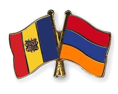 Selbstverständlich sind die Fahnen-Pins auch in umgekehrter Zusammenstellung erhältlich: Links die armenische Fahne und daneben die andorranische Flagge.