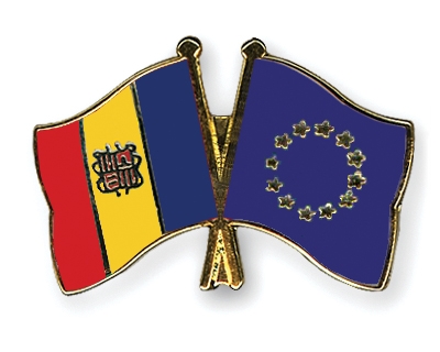 Selbstverständlich sind die Fahnen-Pins auch in umgekehrter Zusammenstellung erhältlich: Links die europäische Fahne und daneben die andorranische Flagge.