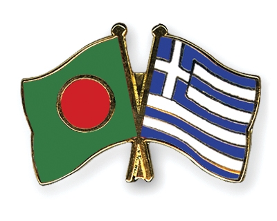 Selbstverständlich sind die Fahnen-Pins auch in umgekehrter Zusammenstellung erhältlich: Links die griechische Fahne und daneben die bangladeschische Flagge.
