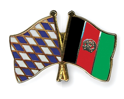 Selbstverständlich sind die Fahnen-Pins auch in umgekehrter Zusammenstellung erhältlich: Links die afghanische Fahne und daneben die bayerische Flagge.