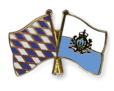 Selbstverständlich sind die Fahnen-Pins auch in umgekehrter Zusammenstellung erhältlich: Links die san-marinesische Fahne und daneben die bayerische Flagge.