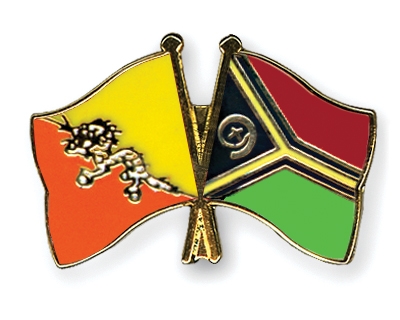 Die Cross Promotion AG liefert hochwertige Freundschaftspins mit der Bhutan Fahne links und der Vanuatu Flagge auf der rechten Seite, wie oben abgebildet.