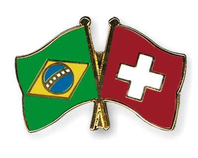 Selbstverständlich sind die Fahnen-Pins auch in umgekehrter Zusammenstellung erhältlich: Links die schweizerische Fahne und daneben die brasilianische Flagge.
