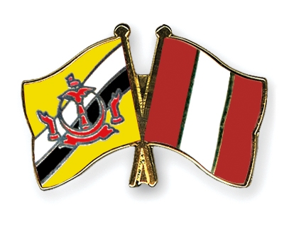 Die Cross Promotion AG liefert hochwertige Freundschaftspins mit der Brunei-Darussalam Fahne links und der Peru Flagge auf der rechten Seite, wie oben abgebildet.