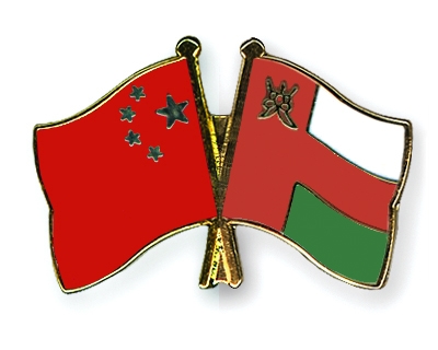 Selbstverständlich sind die Fahnen-Pins auch in umgekehrter Zusammenstellung erhältlich: Links die omanische Fahne und daneben die chinesische Flagge.