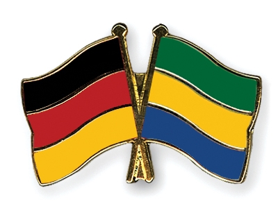 Selbstverständlich sind die Fahnen-Pins auch in umgekehrter Zusammenstellung erhältlich: Links die gabunische Fahne und daneben die deutsche Flagge.
