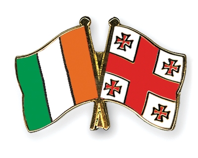 Selbstverständlich sind die Fahnen-Pins auch in umgekehrter Zusammenstellung erhältlich: Links die georgische Fahne und daneben die ivorische Flagge.