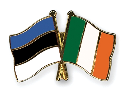 Selbstverständlich sind die Fahnen-Pins auch in umgekehrter Zusammenstellung erhältlich: Links die irische Fahne und daneben die estnische Flagge.