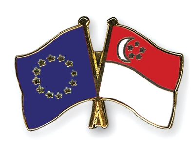 Selbstverständlich sind die Fahnen-Pins auch in umgekehrter Zusammenstellung erhältlich: Links die singapurische Fahne und daneben die europäische Flagge.