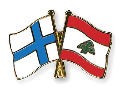 Selbstverständlich sind die Fahnen-Pins auch in umgekehrter Zusammenstellung erhältlich: Links die libanesische Fahne und daneben die finnische Flagge.