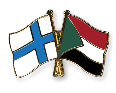 Selbstverständlich sind die Fahnen-Pins auch in umgekehrter Zusammenstellung erhältlich: Links die sudanesische Fahne und daneben die finnische Flagge.