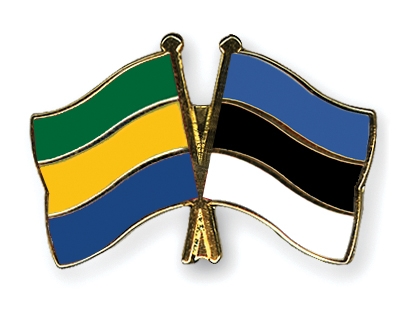 Selbstverständlich sind die Fahnen-Pins auch in umgekehrter Zusammenstellung erhältlich: Links die estnische Fahne und daneben die gabunische Flagge.