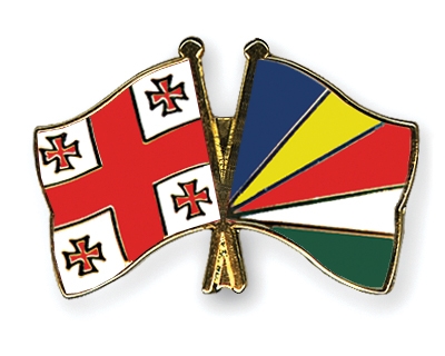 Selbstverständlich sind die Fahnen-Pins auch in umgekehrter Zusammenstellung erhältlich: Links die seychellische Fahne und daneben die georgische Flagge.