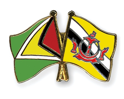 Die Cross Promotion AG liefert hochwertige Freundschaftspins mit der Guyana Fahne links und der Brunei-Darussalam Flagge auf der rechten Seite, wie oben abgebildet.