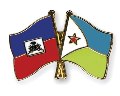 Selbstverständlich sind die Fahnen-Pins auch in umgekehrter Zusammenstellung erhältlich: Links die dschibutische Fahne und daneben die haitianische Flagge.