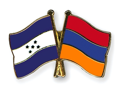 Selbstverständlich sind die Fahnen-Pins auch in umgekehrter Zusammenstellung erhältlich: Links die armenische Fahne und daneben die honduranische Flagge.
