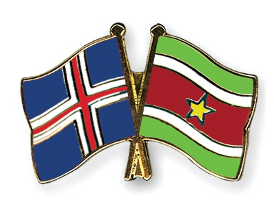 Selbstverständlich sind die Fahnen-Pins auch in umgekehrter Zusammenstellung erhältlich: Links die surinamische Fahne und daneben die isländische Flagge.