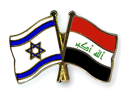 Selbstverständlich sind die Fahnen-Pins auch in umgekehrter Zusammenstellung erhältlich: Links die irakische Fahne und daneben die israelische Flagge.