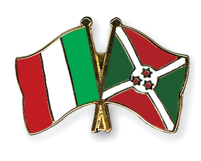 Selbstverständlich sind die Fahnen-Pins auch in umgekehrter Zusammenstellung erhältlich: Links die burundische Fahne und daneben die italienische Flagge.