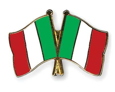 Selbstverständlich sind die Fahnen-Pins auch in umgekehrter Zusammenstellung erhältlich: Links die italienische Fahne und daneben die italienische Flagge.