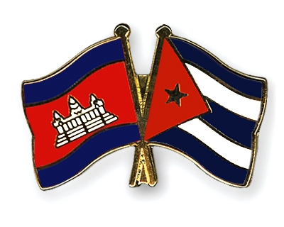 Selbstverständlich sind die Fahnen-Pins auch in umgekehrter Zusammenstellung erhältlich: Links die kubanische Fahne und daneben die kambodschanische Flagge.