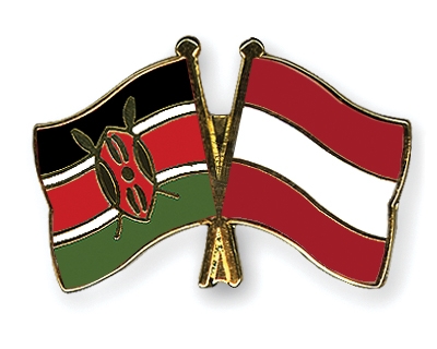 Selbstverständlich sind die Fahnen-Pins auch in umgekehrter Zusammenstellung erhältlich: Links die österreichische Fahne und daneben die kenianische Flagge.