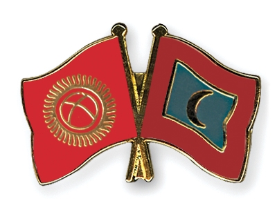 Die Cross Promotion AG liefert hochwertige Freundschaftspins mit der Kirgisistan Fahne links und der Malediven Flagge auf der rechten Seite, wie oben abgebildet.