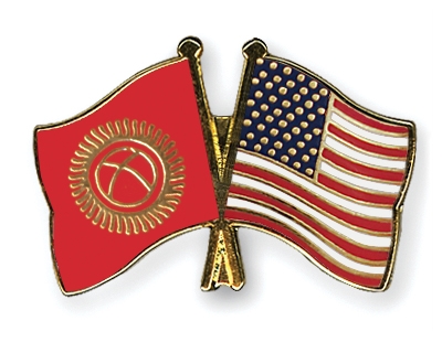 Selbstverständlich sind die Fahnen-Pins auch in umgekehrter Zusammenstellung erhältlich: Links die amerikanische Fahne und daneben die kirgisische Flagge.