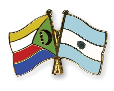 Die Cross Promotion AG liefert hochwertige Freundschaftspins mit der Komoren Fahne links und der Argentinien Flagge auf der rechten Seite, wie oben abgebildet.