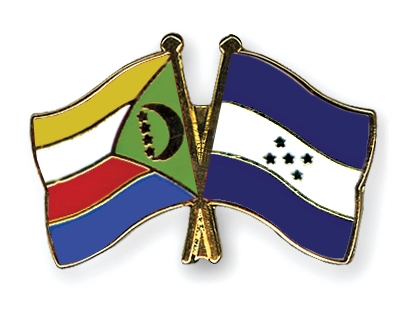 Die Cross Promotion AG liefert hochwertige Freundschaftspins mit der Komoren Fahne links und der Honduras Flagge auf der rechten Seite, wie oben abgebildet.
