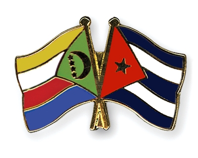 Die Cross Promotion AG liefert hochwertige Freundschaftspins mit der Komoren Fahne links und der Kuba Flagge auf der rechten Seite, wie oben abgebildet.