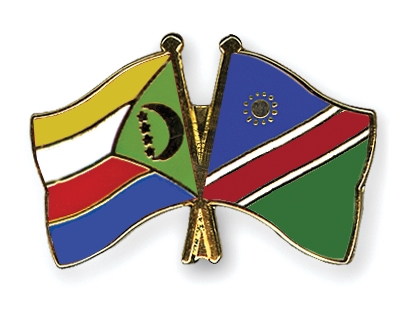 Selbstverständlich sind die Fahnen-Pins auch in umgekehrter Zusammenstellung erhältlich: Links die namibische Fahne und daneben die komorische Flagge.