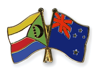 Die Cross Promotion AG liefert hochwertige Freundschaftspins mit der Komoren Fahne links und der Neuseeland Flagge auf der rechten Seite, wie oben abgebildet.