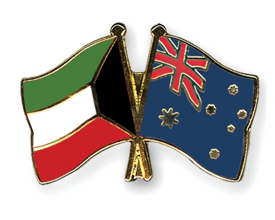 Selbstverständlich sind die Fahnen-Pins auch in umgekehrter Zusammenstellung erhältlich: Links die australische Fahne und daneben die kuwaitische Flagge.