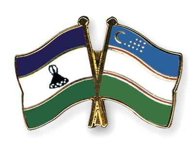 Die Cross Promotion AG liefert hochwertige Freundschaftspins mit der Lesotho Fahne links und der Usbekistan Flagge auf der rechten Seite, wie oben abgebildet.