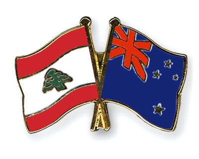Selbstverständlich sind die Fahnen-Pins auch in umgekehrter Zusammenstellung erhältlich: Links die neuseeländische Fahne und daneben die libanesische Flagge.