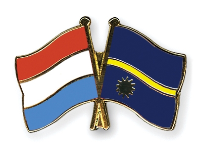 Selbstverständlich sind die Fahnen-Pins auch in umgekehrter Zusammenstellung erhältlich: Links die nauruische Fahne und daneben die luxemburgische Flagge.
