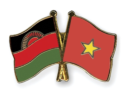 Selbstverständlich sind die Fahnen-Pins auch in umgekehrter Zusammenstellung erhältlich: Links die vietnamesische Fahne und daneben die malawische Flagge.