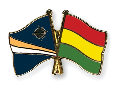 Die Cross Promotion AG liefert hochwertige Freundschaftspins mit der Marshallinseln Fahne links und der Bolivien Flagge auf der rechten Seite, wie oben abgebildet.