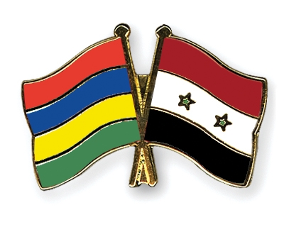 Selbstverständlich sind die Fahnen-Pins auch in umgekehrter Zusammenstellung erhältlich: Links die syrische Fahne und daneben die mauritische Flagge.