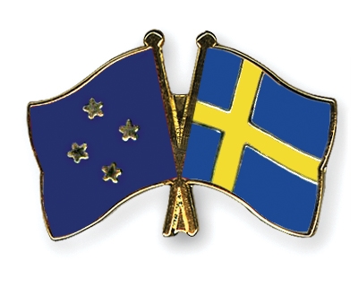 Selbstverständlich sind die Fahnen-Pins auch in umgekehrter Zusammenstellung erhältlich: Links die schwedische Fahne und daneben die mikronesische Flagge.