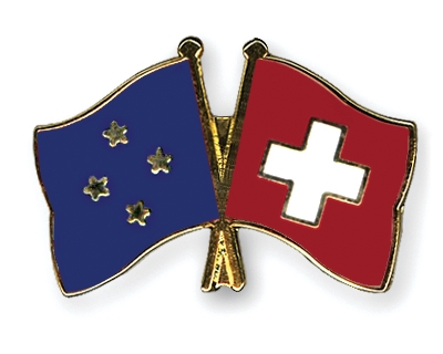 Die Cross Promotion AG liefert hochwertige Freundschaftspins mit der Mikronesien Fahne links und der Schweiz Flagge auf der rechten Seite, wie oben abgebildet.