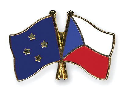 Selbstverständlich sind die Fahnen-Pins auch in umgekehrter Zusammenstellung erhältlich: Links die tschechische Fahne und daneben die mikronesische Flagge.