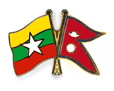Selbstverständlich sind die Fahnen-Pins auch in umgekehrter Zusammenstellung erhältlich: Links die nepalesische Fahne und daneben die myanmarische Flagge.