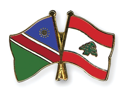 Selbstverständlich sind die Fahnen-Pins auch in umgekehrter Zusammenstellung erhältlich: Links die libanesische Fahne und daneben die namibische Flagge.