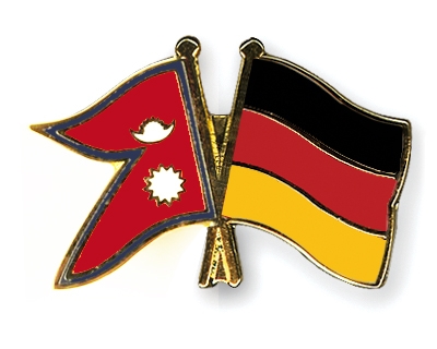Selbstverständlich sind die Fahnen-Pins auch in umgekehrter Zusammenstellung erhältlich: Links die deutsche Fahne und daneben die nepalesische Flagge.