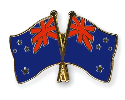 Selbstverständlich sind die Fahnen-Pins auch in umgekehrter Zusammenstellung erhältlich: Links die neuseeländische Fahne und daneben die neuseeländische Flagge.