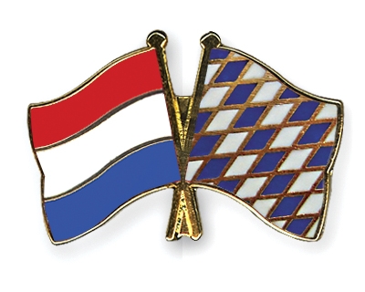 Selbstverständlich sind die Fahnen-Pins auch in umgekehrter Zusammenstellung erhältlich: Links die bayerische Fahne und daneben die niederländische Flagge.