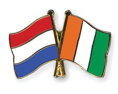Die Cross Promotion AG liefert hochwertige Freundschaftspins mit der Niederlande Fahne links und der Elfenbeinküste Flagge auf der rechten Seite, wie oben abgebildet.