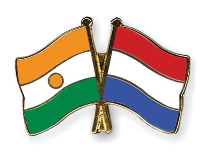 Selbstverständlich sind die Fahnen-Pins auch in umgekehrter Zusammenstellung erhältlich: Links die niederländische Fahne und daneben die nigrische Flagge.